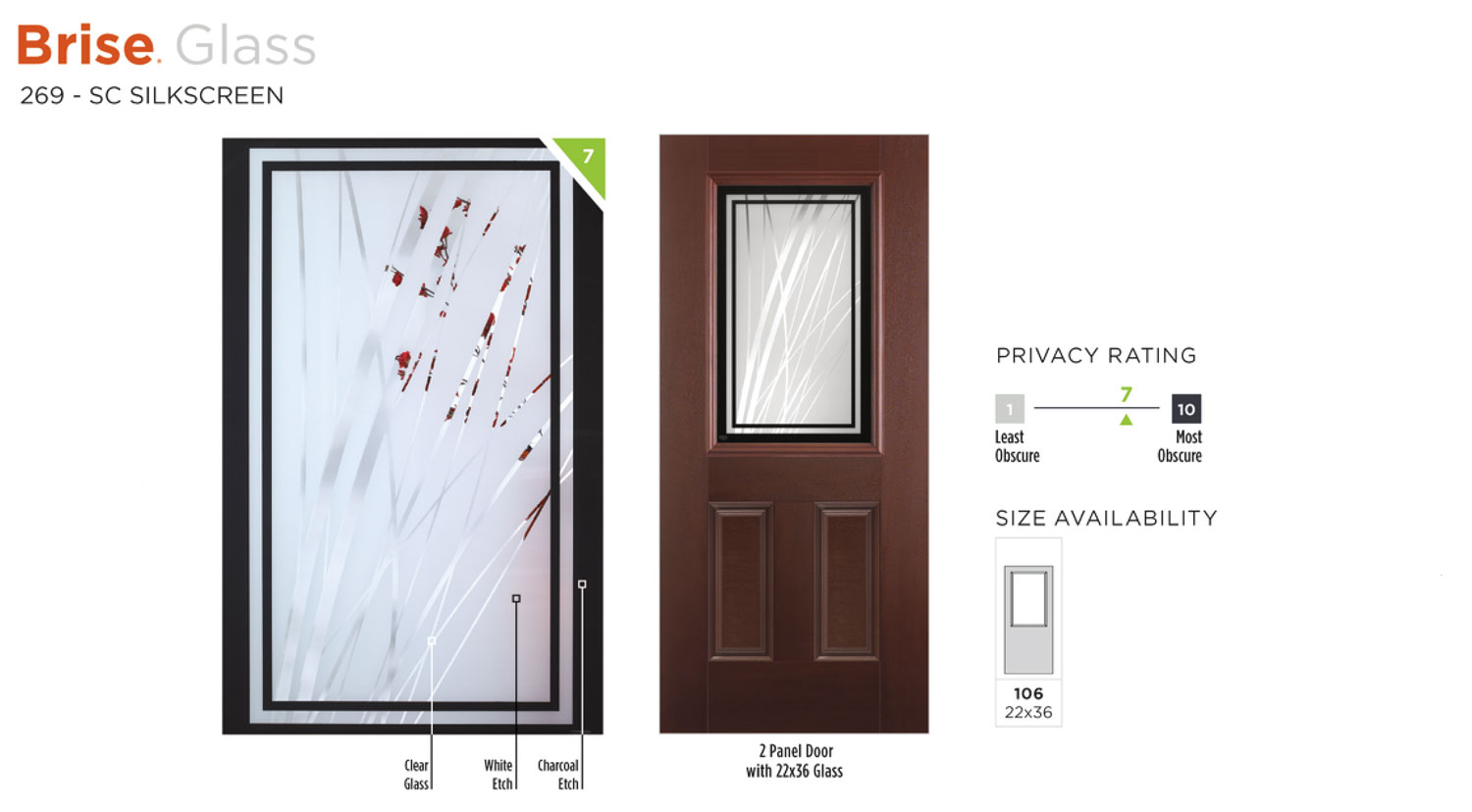 Decorative glass embraces natural light and transforms any entryway into a vision of beauty without compromise. So, add charm and sophistication to your home’s entry, inside and out, with one of our superbly crafted glass designs offered in a variety of con!gurations. The choice is yours.